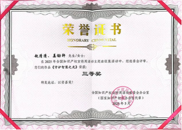 本次活动由全国知识产权宣传周活动组委会办公室主办,旨在通过艺术形式弘扬知识产权文化,提升公众尊重和保护知识产权的意识,扩大宣传周影响力。活动共征集到来自全国的逾60件作品,经专业评审严格筛选,最终评选出一、二、三等奖共12首获奖歌曲。