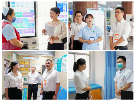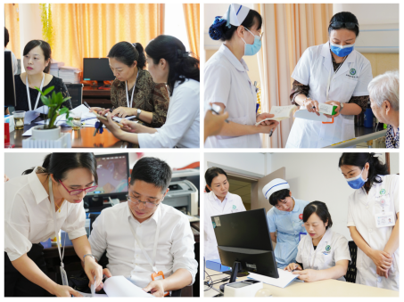 汇报会后,评审专家组分为“卓越管理”、“卓越医疗”、“卓越护理”、“卓越人文”四个评审小组,分别前往医务部、护理部、办公室、急诊科、神经外科、神经内科、骨科二区、门诊、导诊等科室和部门,通过查看资料、现场检查、职工患者访谈等方式,对医院进行了全方位的评审。