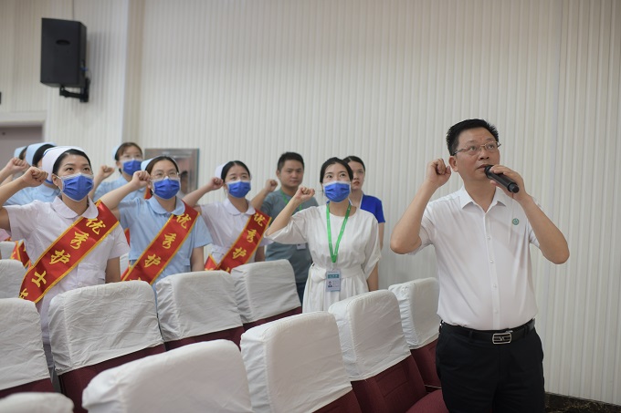 会上,医院党委书记、院长伍石华带领大家重温了“希波克拉底誓言”。党委委员、副院长双庆翠代表医院党委和伍石华致辞,向辛勤工作在临床一线、维护人民群众健康、无私奉献的医师们致以崇高的敬意和诚挚的问候。
