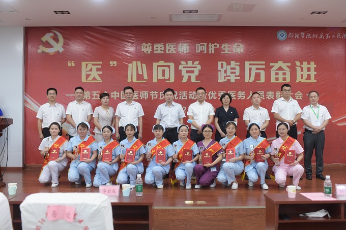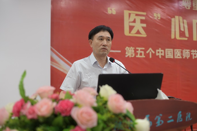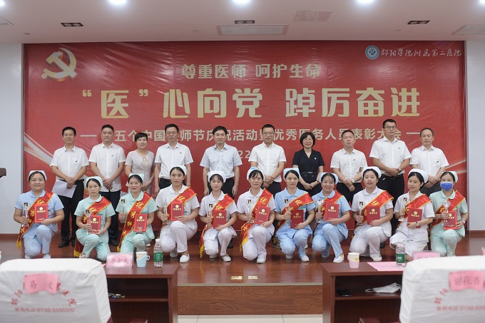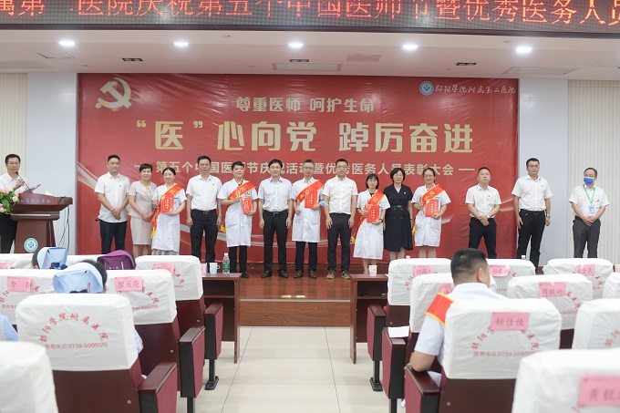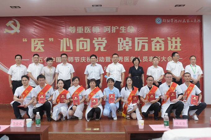 2022年8月19日是第五个中国医师节,今年的主题是“'医'心向党 踔厉奋进”。8月19日下午,邵阳学院附属第二医院举办庆祝第五个中国医师节暨优秀医务人员表彰大会,全院数百名医务人员齐聚一堂,共庆节日。邵阳学院党委委员、副校长兼医学部主任李金成,医学部常务副书记黄俊出席会议。会议由医院党委委员、副院长肖体君主持。