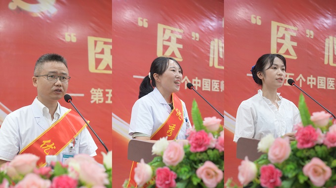 优秀科主任代表颜金泉、优秀医师代表刘娟、优秀护士代表晏秀珍分别上台作表态发言。