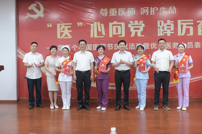 会上,党委副书记兼纪委书记张根萍宣读了《关于第五届中国医师节对优秀医务人员的表彰决定》《关于“5.12”国际护士节对优秀护理人员的表彰决定》《关于公布庆祝第五个中国医师节系列竞赛活动结果的通知》《关于公布“附二新科技 一起向未来”2022年抖音短视频创作大赛结果的通知》,并现场进行表彰。
