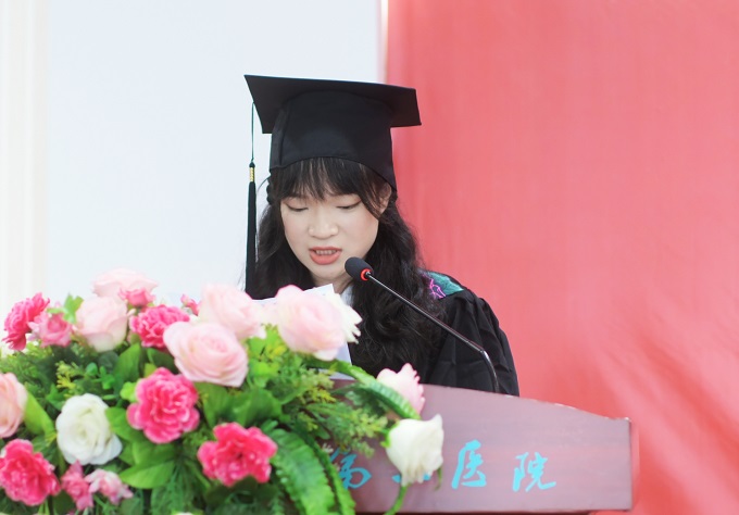 教师代表曾扬发言时说道:“都说学医是辛苦的,一入医门深似海,但惟其艰难,方知勇毅,惟其磨砺,始得玉成。希望你们不忘初心坚守医学这条道路,义无反顾,无怨无悔,铭记‘健康所系,性命相托’之殷嘱,履行‘悬壶济世,救死扶伤’之道义,愿治病救人的信念如远处的灯塔,划破所有对于未来迷惘的浓雾,指引你们勇敢、执着、努力和进取。前行的路上惟愿你们无谓艰难险阻,不负来时初心!”