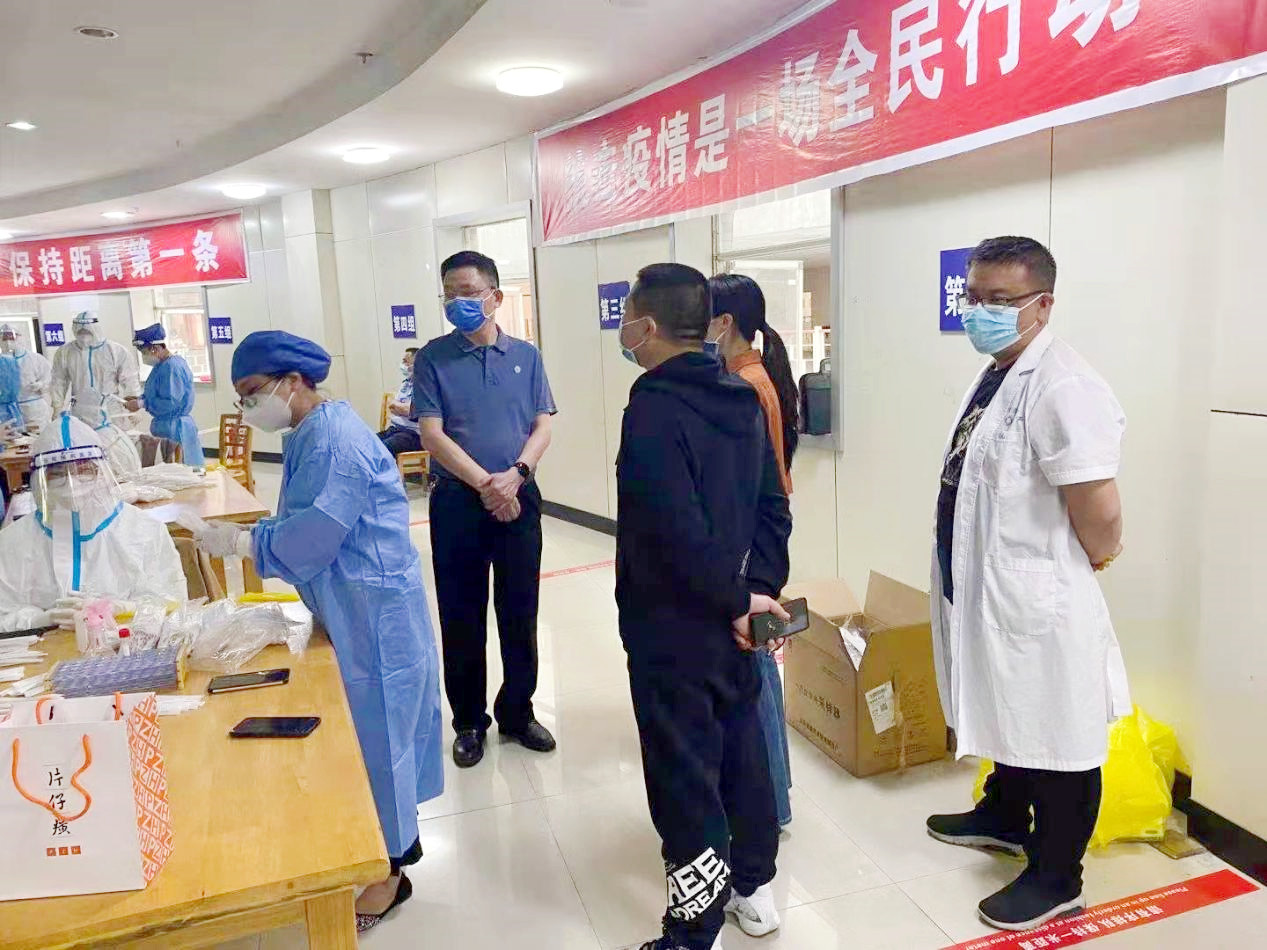 4月11日上午,邵阳学院附属第二医院党委书记、代院长伍石华赶赴学校七里坪校区督查核酸采集工作,并对所有采集人员进行了慰问,天气炎热,要大家在工作的同时保重身体。