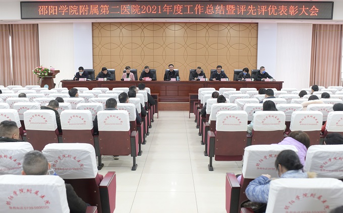 2022年1月27日下午,我院召开2021年度工作总结暨评先评优表彰大会。医院全体党政班子成员、各科室主任、病区主任、护士长、职能部门主任、各总支书记及支部书记参加会议。党委委员、副院长肖乐东主持会议。