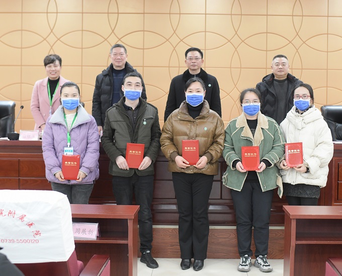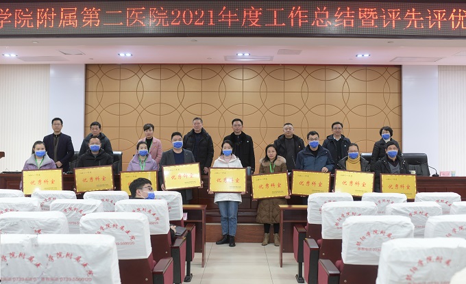 星光不问赶路人,时光不负有心人。胡杨青接着宣读了医院《关于表彰2021年度优秀科室、职能科室先进个人的通知》,肾内科及风湿免疫科(血液净化中心)、内分泌科、关节与创伤外科、甲状腺及乳腺外科荣获优秀临床科室,超声医学科、发热门诊(预检分诊)荣获优秀医技科室,护理部、组织人事部、医改办荣获优秀职能科室,莫子君、唐喜群、杨满元荣获优秀职能科室主任,周娟、唐利群、龙文杰、袁祥云、彭媛荣获职能科室先进个人,全体院领导为获奖的优秀科室和先进个人进行了颁奖。