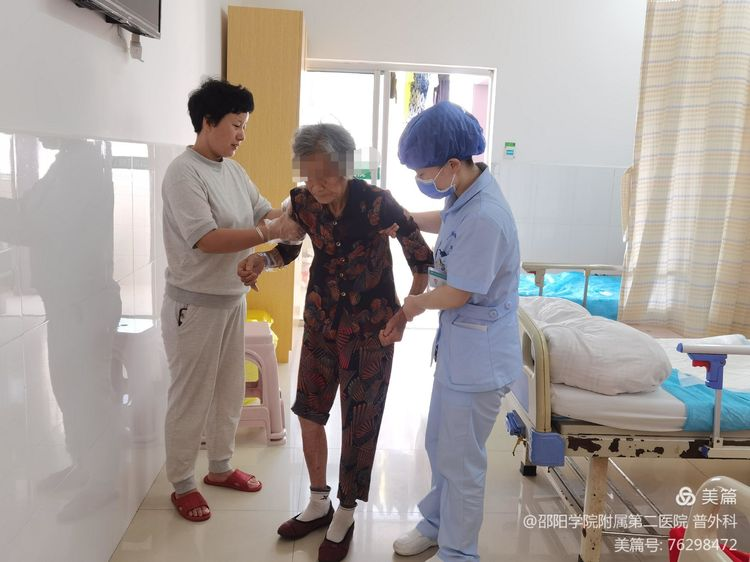 伤口慢慢结痂,袁飞燕护士扶患者练习走路