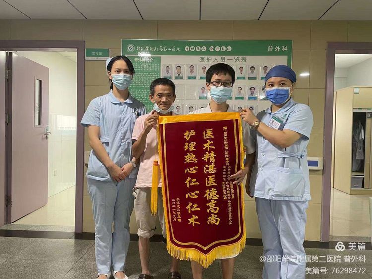 转入普外科后,科主任戴旭波、副主任医师石俊及主管医师谭金星立即了解患者病情,并为其制定一个详尽的诊疗方案。因考虑到患者家庭经济困难,普外科医护人员充分利用现有医疗资源,最大力度地为患者节约医疗费用,解除患者及家属的经济顾虑。