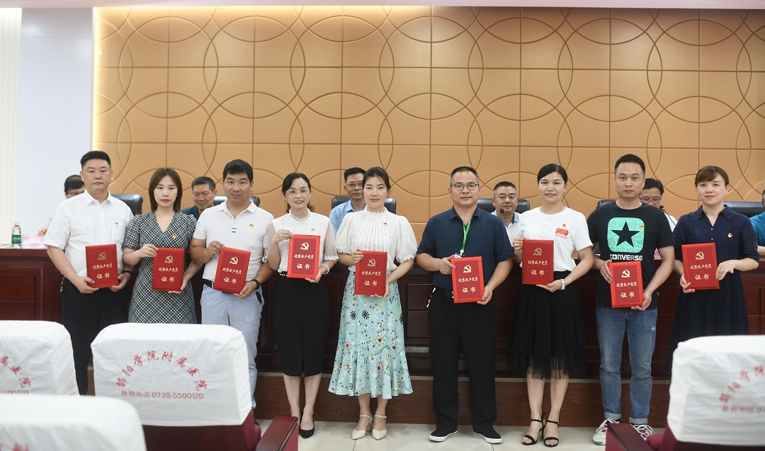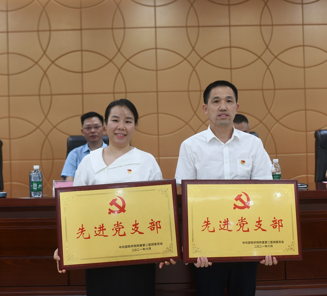 会上,胡杨青宣读了医院《关于表彰优秀共产党员、优秀党务工作者和先进党支部的决定》。全体院领导为2名“光荣在党50年”老党员颁发纪念章,为唐喜群等27位“优秀共产党员”、许蔚等9位“优秀党务工作者”、外科一支部和门诊医技支部2个先进党支部颁奖。