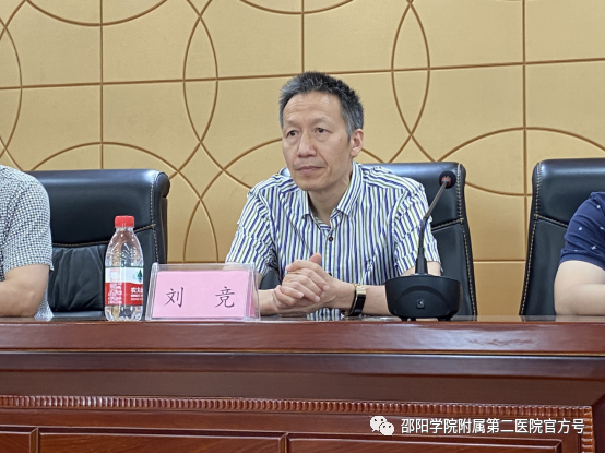 佘贵平副院长为会议致辞,热烈欢迎刘竞教授及各医院血液肿瘤科主任到我院参加学术活动。