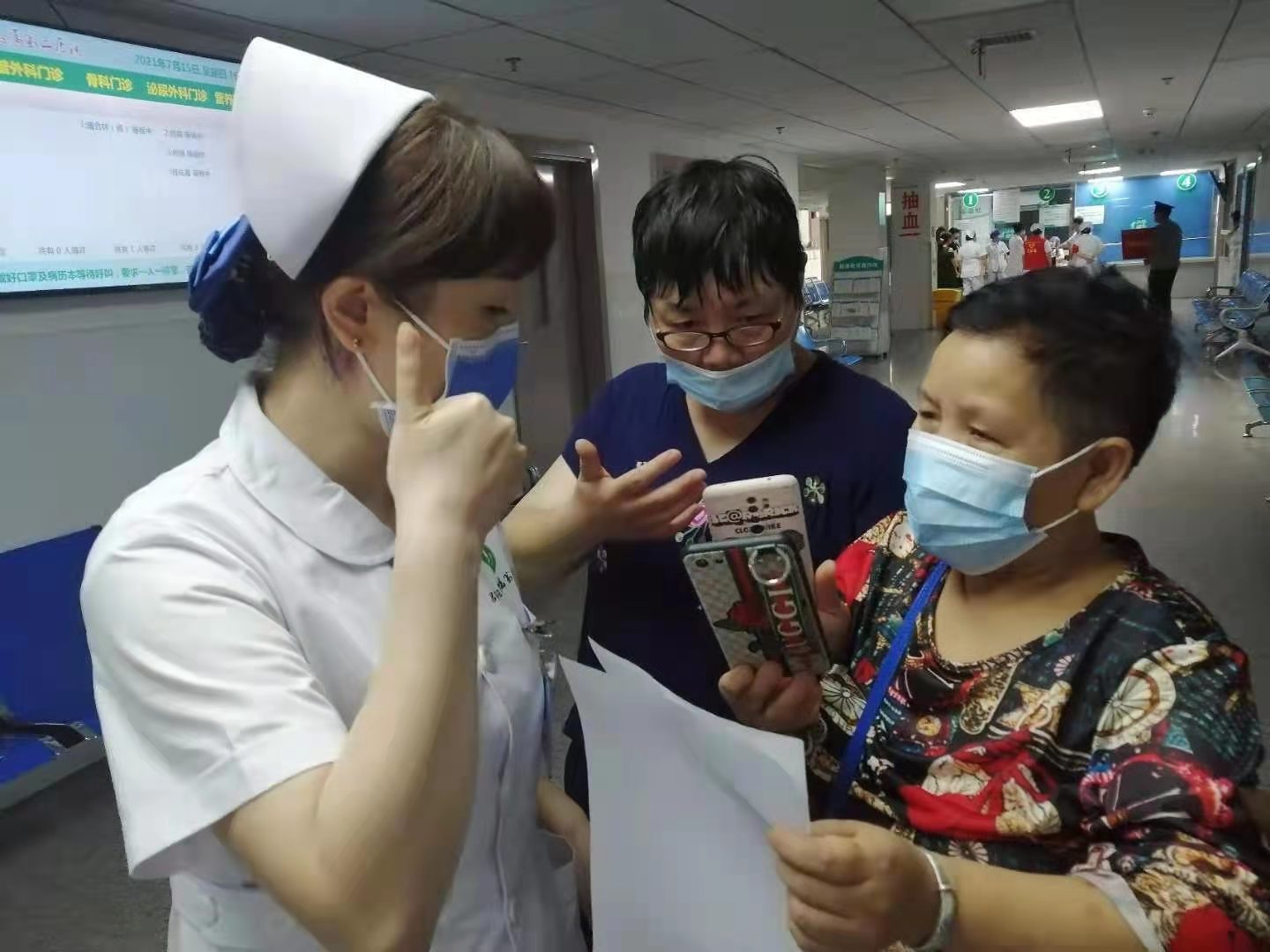715日下午,导诊台来了三位咨询的老人,她们用手各种比划着,有点焦急。导诊台的值班护士何丽娅马上反应过来,这是三位听障人士。何丽娅是我院手语志愿者,曾经在《医院手语课堂》上接受过简单的就医诊疗手语培训,于是她用手语询问老人是不是哪里不舒服?头、腹部还是四肢?老人们一看护士居然会手语,特别开心,马上指着自己的膝盖。何丽娅便带着老人来到了骨科门诊,向医生说明情况,和医生一起利用文字和老人进行详细的交流、问诊,并全程陪同老人进行就诊、检查。老人的家属因为有事不能陪同老人过来就医,发来视频通话得知这一情况后,在视频里向何丽娅反复表达了感谢,说没想到邵阳学院附属第二医院的服务这么好,能让听障人士的就医通道如此通畅。老人们也用手语多次向何丽娅表示感谢!