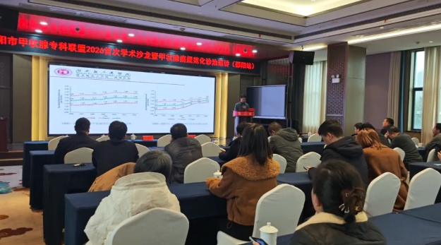1月16日,由我院主办的邵阳市甲状腺专科联盟2026年度首次学术沙龙暨甲状腺癌规范化诊治巡讲(邵阳站)成功举办。本次活动旨在打破区域医疗壁垒,整合优质医疗资源,持续推进全市甲状腺癌诊疗向规范化、精准化发展。来自全市各联盟成员单位甲乳科、普外科及相关科室的医护人员齐聚一堂,围绕甲状腺癌的最新诊疗进展与临床实践难点展开深入交流与讨论。开幕式由我院甲状腺乳腺外科主任李洲成教授主持。