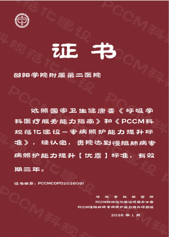 近日,2026年中国呼吸学科发展大会在北京举行。会议宣布我院呼吸与危重症医学科顺利通过国家呼吸与危重症医学科(PCCM)规范化建设认证,并获评“慢阻肺病专病优秀单位”。