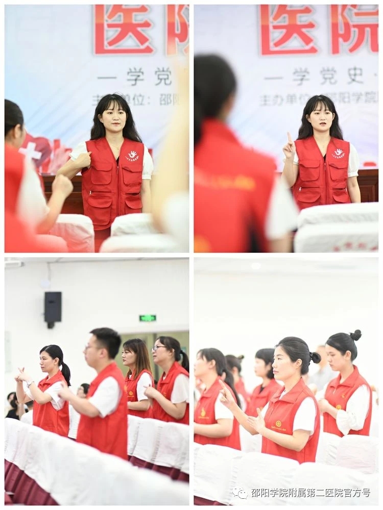本次活动由邵阳学院附属第二医院主办,邵阳市一只手志愿服务团队协办,共有健康体检和手语课堂两大篇章。健康体检篇章中,我院为听障人士提供了免费健康体检服务,包括B超、X片、心电图、生化检测、大小便常规和血常规、内科、外科、五官科等项目。手语课堂篇章分为手语学党史、急救知识培训、日常就诊常用手语培训、同“唱”一首歌四个小节。