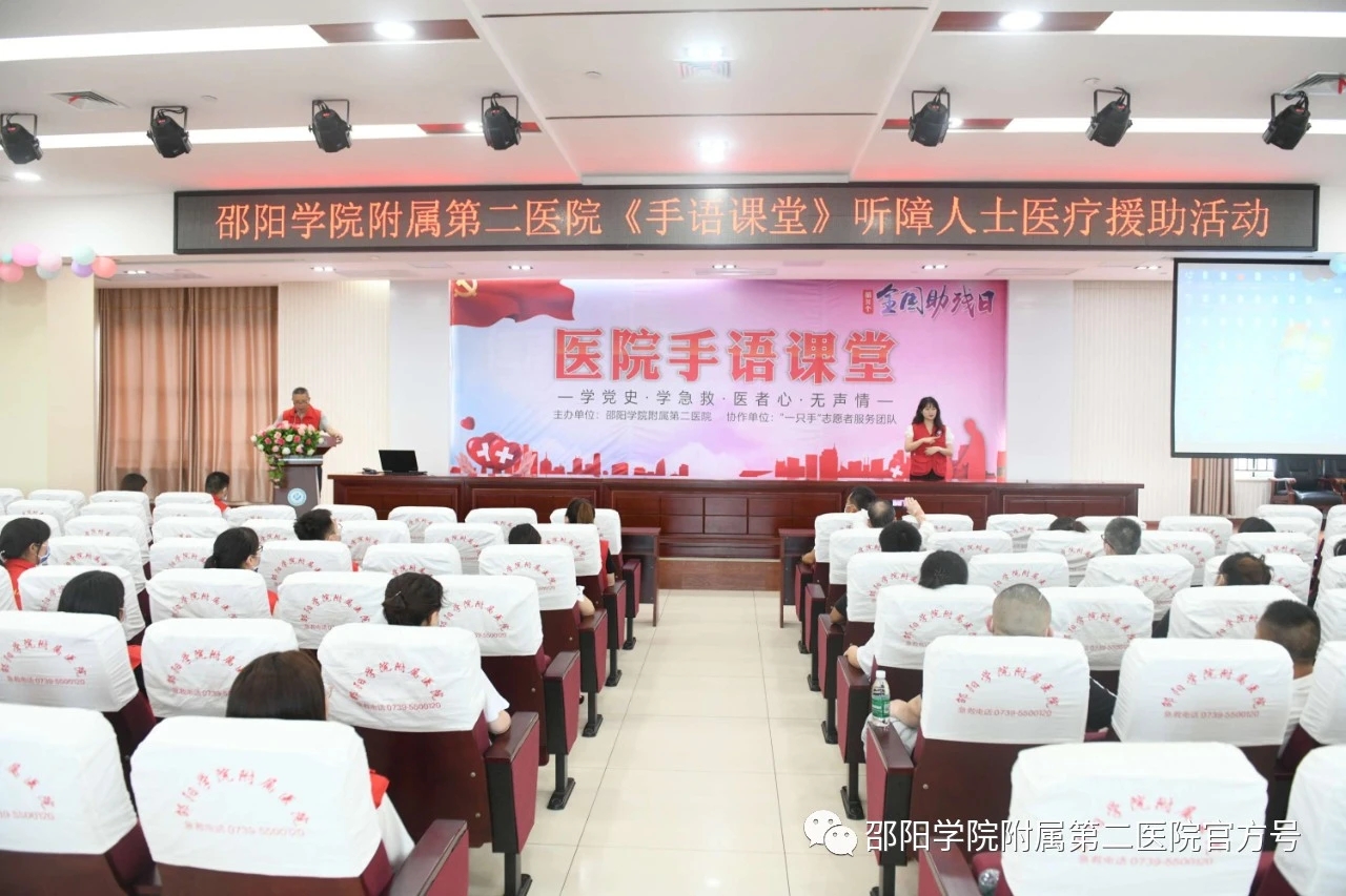 今年5月16日是第三十一个“全国助残日”,为了倡导扶残助残的良好风尚,有效缓解听障人士就医的困难,5月15日上午,邵阳学院附属第二医院开展了“手语课堂”医疗援助活动,为20余名听障人士送去医疗服务。院长助理佘贵平参加活动并讲话。