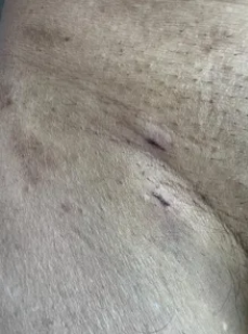 此类手术技术要求高,关键在于支架主体及分支的精准定位与释放。手术难点在于近端覆膜支架的锚定区通常需紧邻肾动脉开口下方,定位要求极为精确(通常在肾动脉下方1-2mm范围),释放过程中需克服血流冲击和血管搏动的影响,细微偏差可能导致重要分支血管(如肾动脉)覆盖或锚定区不足引发内漏。很多医院的这种手术需要患者全麻,股动脉切开暴露。朱席政主任团队凭借丰富经验与娴熟技术,在局麻下顺利完成手术,过程顺利,手术切口仅为两个小穿刺孔(图片附后)。术后患者恢复良好,术后24小时已可下床活动。