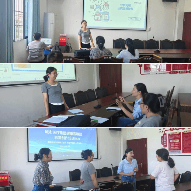 提升基层健康科普能力是夯实健康网底的关键。6月3日,集团总医院高级科普师赵清清专程前往陈家桥镇中心卫生院,与总医院派驻该院的护理部主任吕颖共同为卫生院的健康宣讲团成员开展了磨课活动。两位专家围绕课程设计、授课技巧、内容科学性等方面进行深度辅导,旨在帮助基层宣讲员提升专业素养,打磨出更接地气、更受欢迎的优质科普课程。