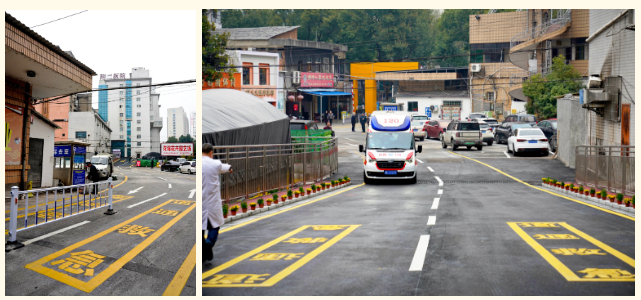 新急救绿色通道贯穿原邵阳市群艺馆停车场,与西湖路直接连通,全长34米、宽12米,宽敞通畅的专属通道大幅缩短了急救车辆的通行、停靠及患者转运时间,从院前转运到院内救治的衔接流程得到进一步优化,实现急危重症患者救治“零延误”,有效提升医院急危重症救治的效率。