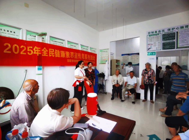 6月19日(周四)上午,尽管细雨绵绵,总医院与陈家桥镇中心卫生院的健康宣讲团依然如约走进陈家桥镇石子坳村,联合开展“2025年全民健康素养月”系列活动(本月第六场)。团队秉持“人在哪里,健康舞台就在哪里”的理念,因地制宜,在室内场地将活动办得有声有色。