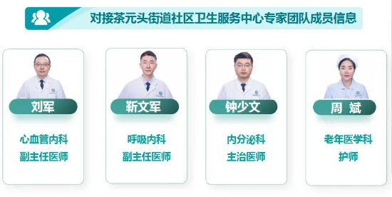 本次组建的“全专融合型家庭医生团队”是由我院呼吸内科、心血管内科、内分泌科、老年医学科的4名专科医疗专家及护理人员与茶元头街道社区卫生服务中心全科医生、公卫护士组成的联合团队,重点开展慢病管理及家庭医生签约服务。