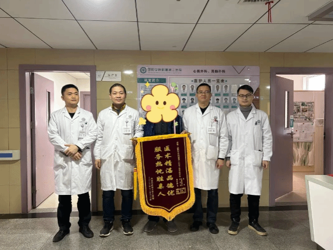 12月21日,刘爷爷康复出院。出院当天,患者儿子特地制作一面锦旗送到胃肠外科,感谢胃肠外科医护团队对刘爷爷的精心治疗。