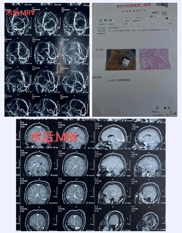 手术历时7个小时,顺利将患者颅内侵犯横窦区、窦汇区的肿瘤及被侵犯的硬脑膜完全切除,手术做到Simpson 1级切除,术后病理检查提示:纤维性脑膜瘤。