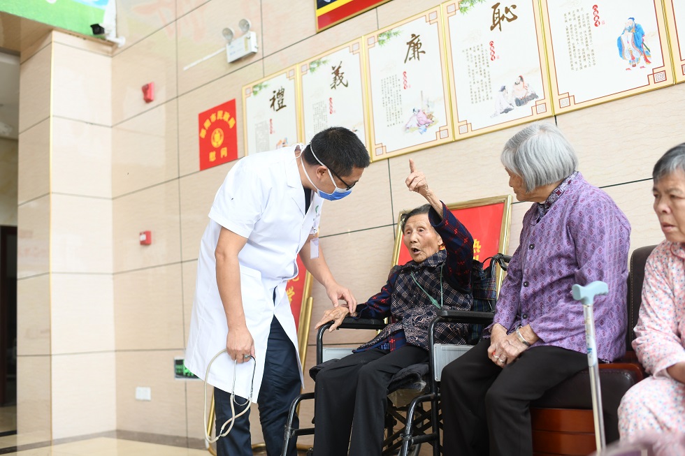 志愿者与医护人员组成的“医联体”针对疫情期间在看病、康复治疗、疾病预防、注意事项等方面为夕阳红老年公寓的老年人及附近的群众答疑解惑,送去治病办法、长寿诀窍和健康心得。