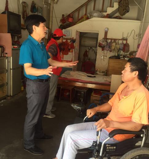 义诊活动现场有一位坐着轮椅的特殊居民吴小成,他因一场疾病导致半身瘫痪,既无妻儿,又无生活来源,每月靠残疾人救助金维持基本生活。正在义诊活动现场的党委书记李杰红亲自陪同他做完相关体检,并带领党员志愿者来到吴小成家中开展志愿者活动。当了解到吴小成每天日常行动都是在轮椅上度过,电动轮椅需不定期更换电瓶,而更换电瓶的费用对他来说是一笔很大的开支,李书记当成表示给吴小成捐赠一个轮椅电瓶,并代表医院赠送他体检卡。临走时,李书记安慰鼓励吴小成,我院将定期派志愿者为他打扫室内卫生,清洗衣物和被单,为他营造舒适、整洁的生活环境。