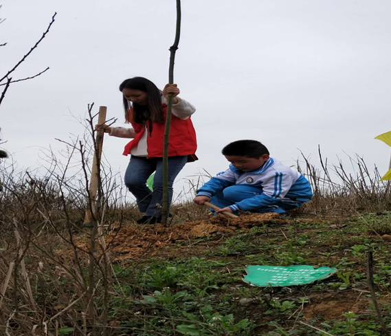 整个过程大家紧密协作,其乐融融,个个脸上洋溢着笑容,流着幸福的汗水。经过一个下午,300多棵小树苗轻轻摇曳于风中,尽显勃勃生机!