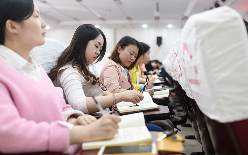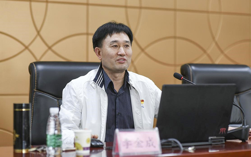 李金成以《守初心、担使命、找差距、抓落实》为题,从共产党人的初心和使命是什么,医务工作者、教育工作者的初心和使命是什么,对照守初心担使命、检视自己找差距,抓落实四个方面进行了阐述。